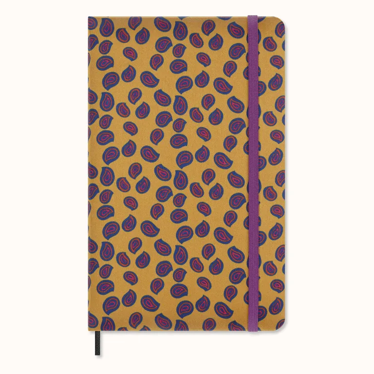 Velký linkovaný zápisník v dárkové kartonové krabici. Zápisník má pevnou, ve hřbetu šitou vazbu v kartonových deskách potažené italským hedvábím od společnosti Mantero. Obepíná ho pružná páska proti samovolnému otevírání. Obsahuje praktickou vnitřní kapsu, textilní záložku a leták s historií Moleskine. Papír v barvě slonoviny s gramáží 70 g/m2 neobsahuje kyseliny. Vyrobeno z papíru získaného šetrným lesním hospodařením podle FSC.