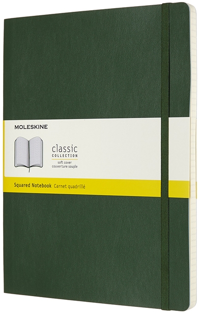 Zápisník Moleskine měkký čtverečkovaný zelený XLihned699,00 Kč/ ks577,69 Kč bez DPH